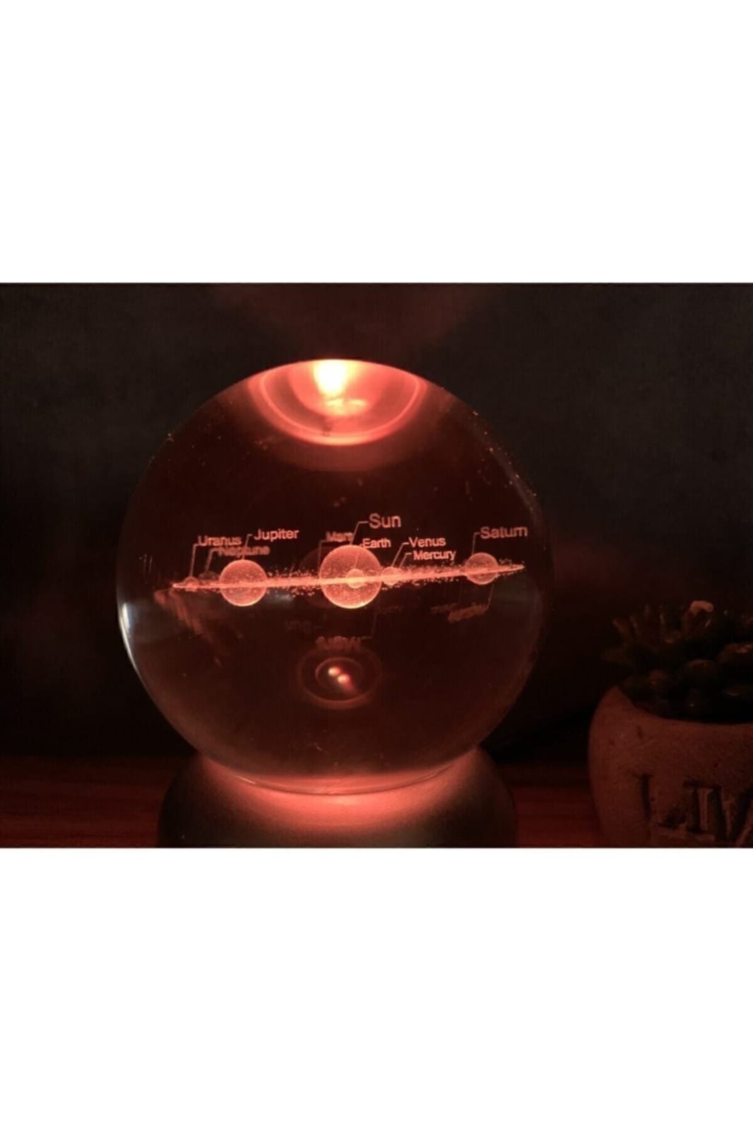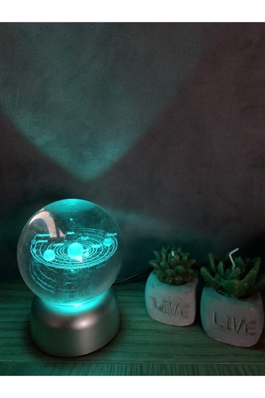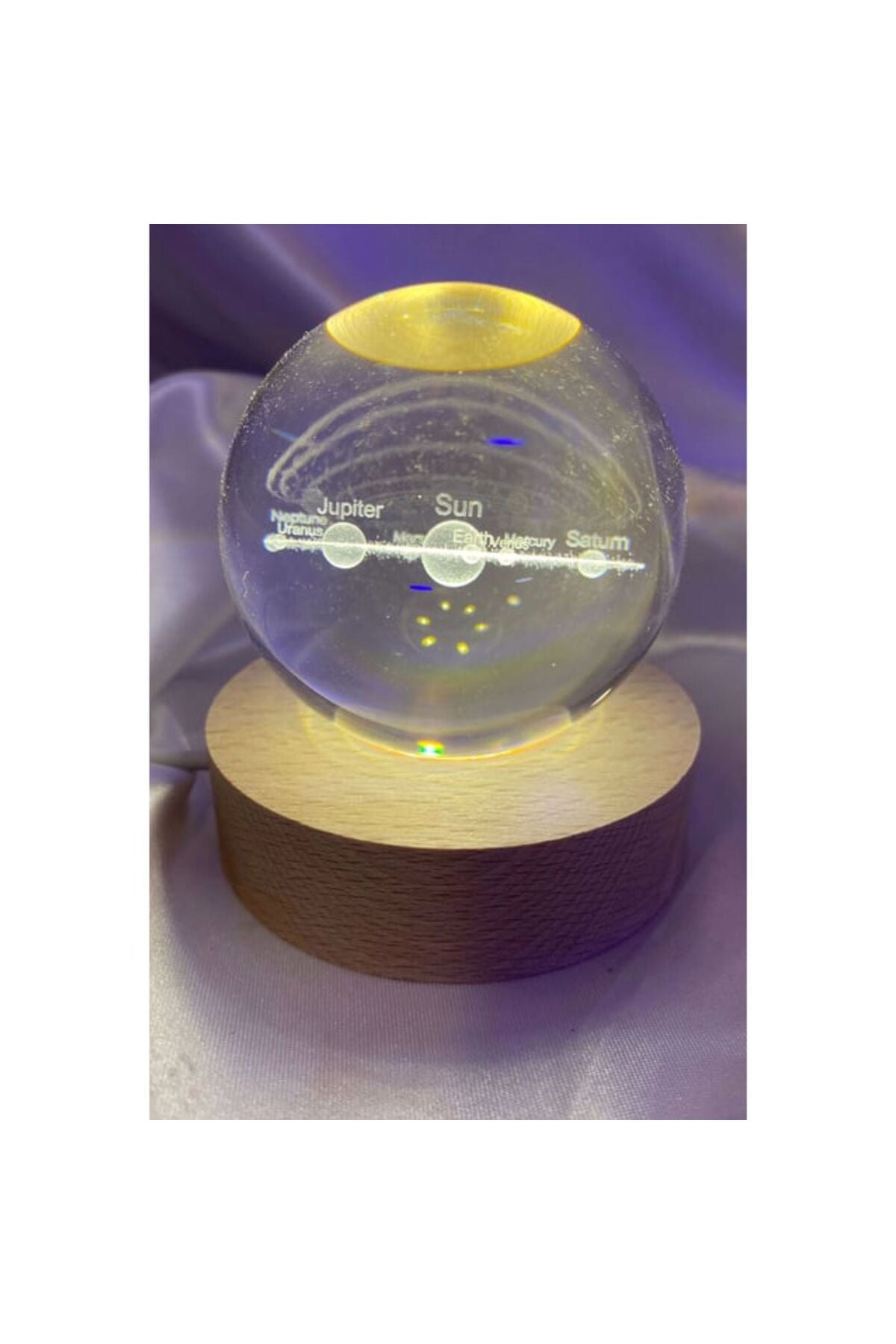 Güneş Sistemi Tasarımlı Işıklı Cam Küre Merkür, Venüs, Dünya, Mars, Jüpiter, Satürn, Uranüs , Neptün ürün özellikleri: ürün kaliteli cam malzemeden üretilmiştir