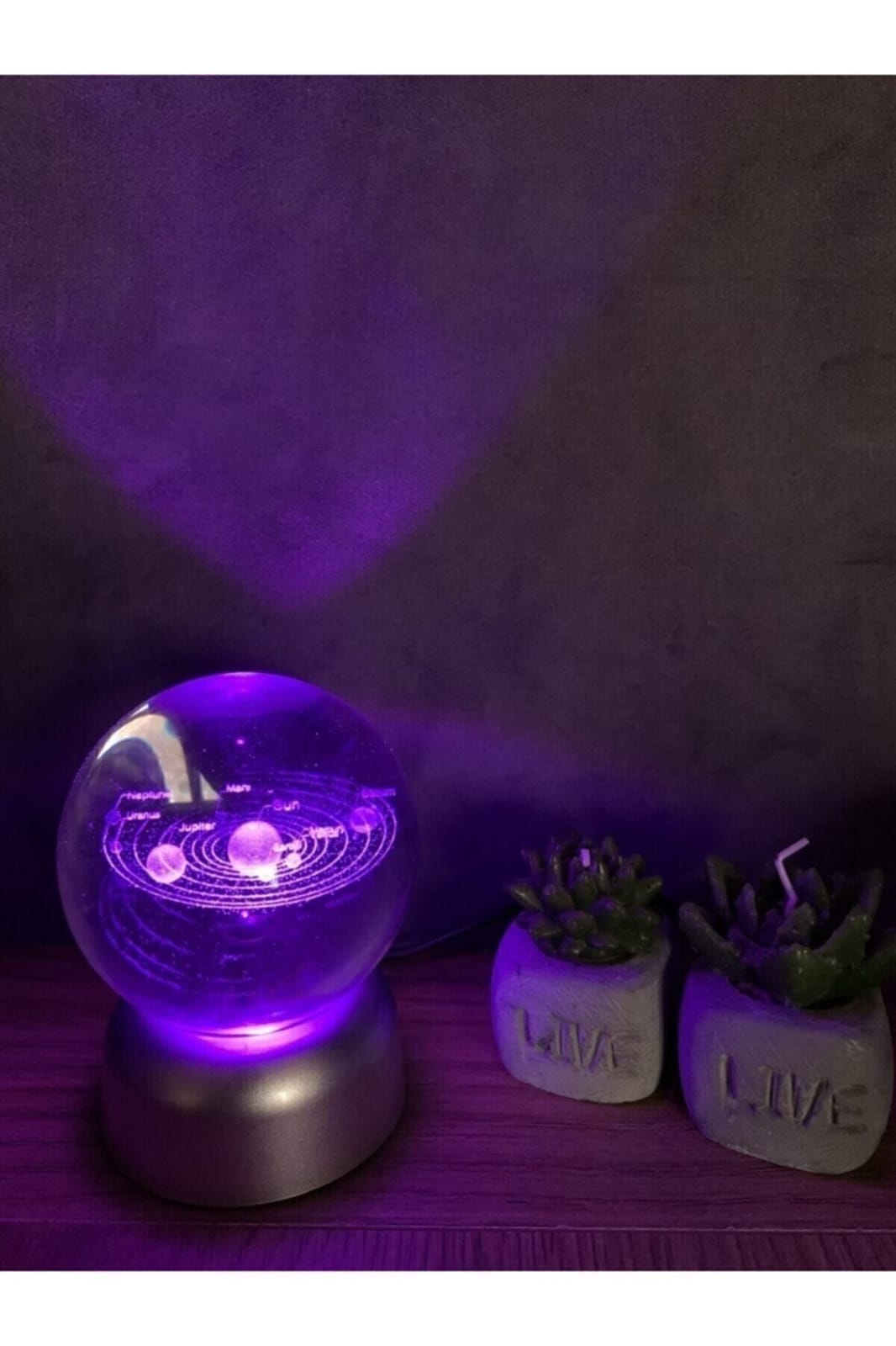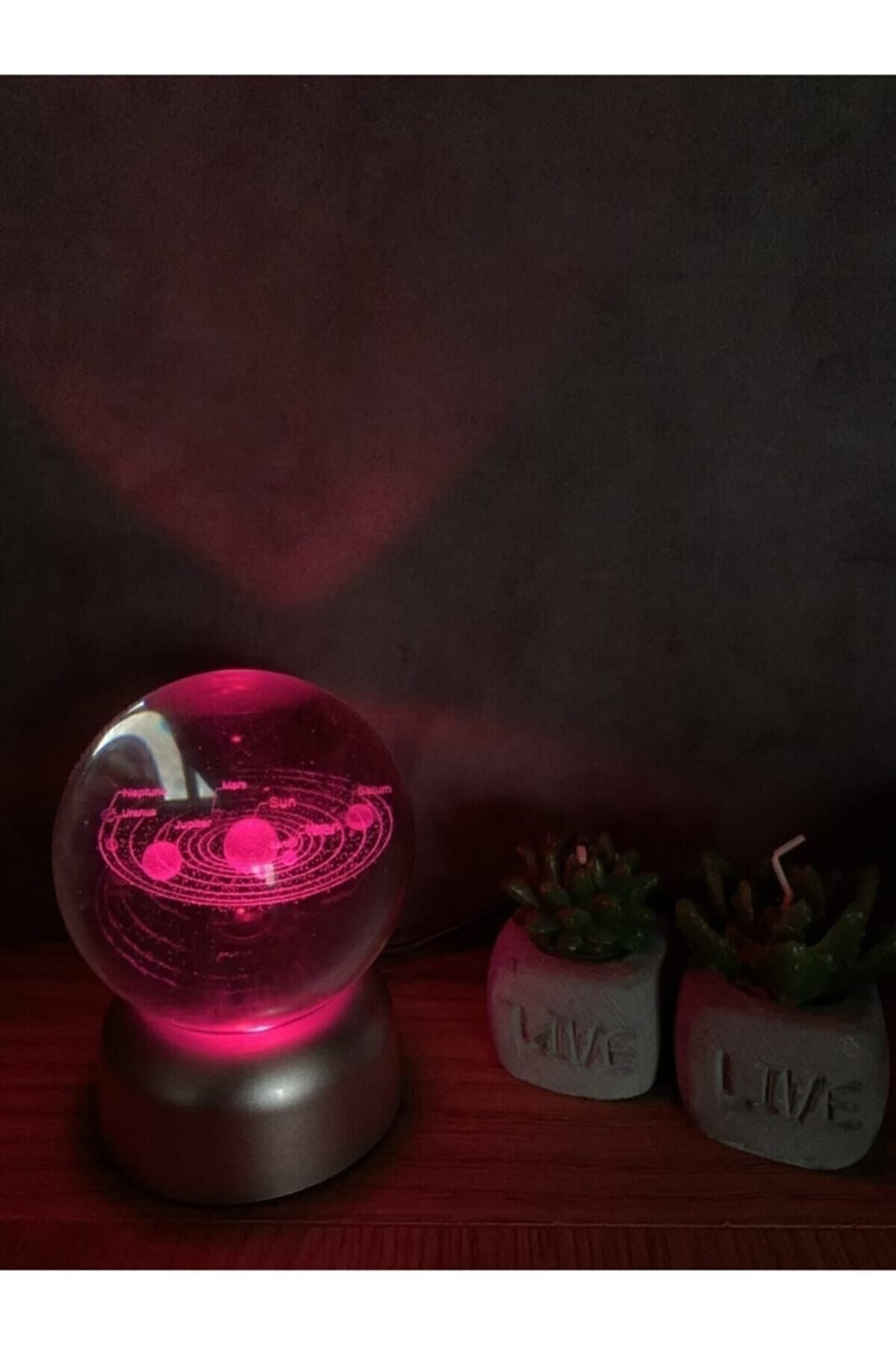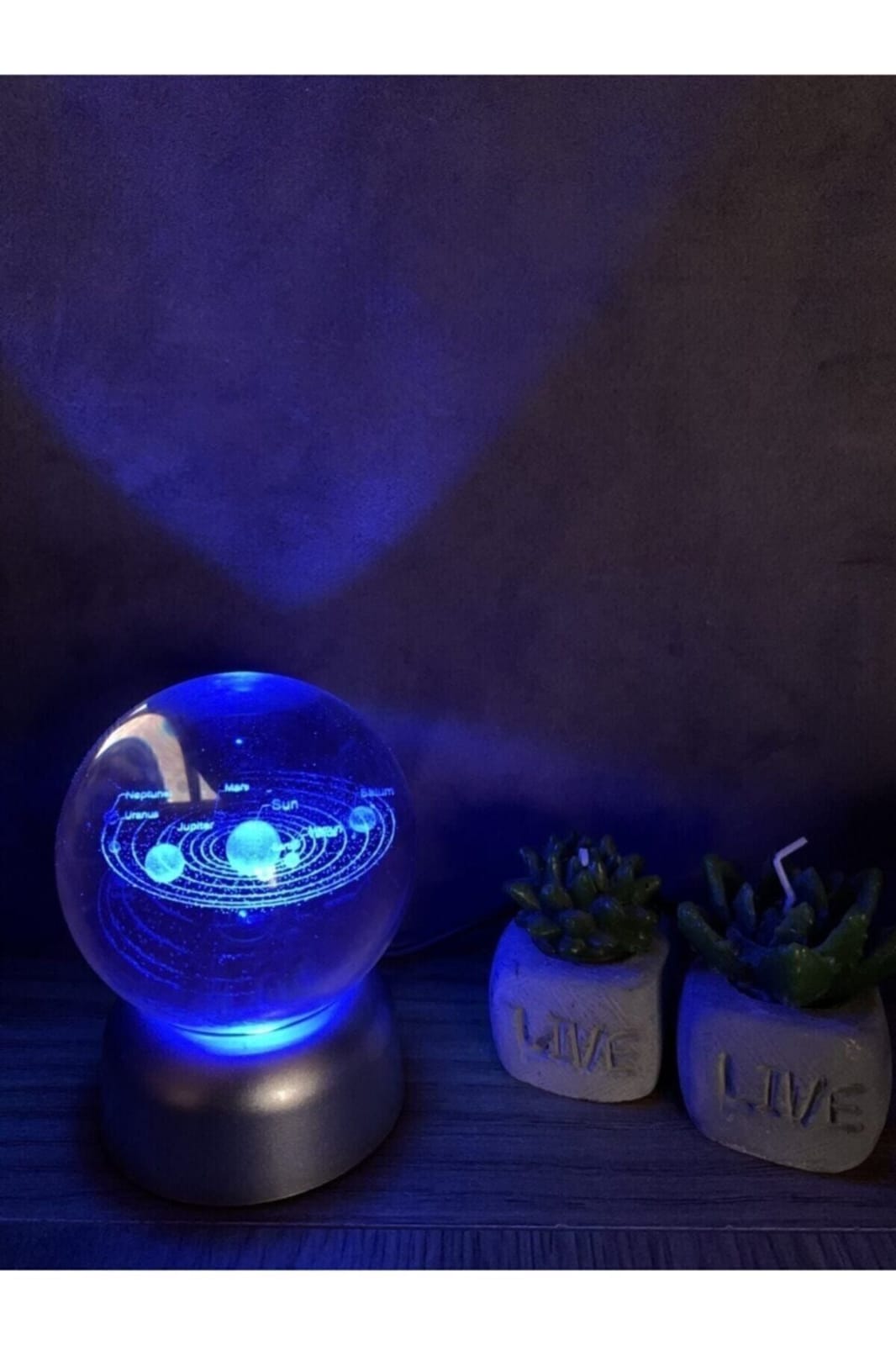Güneş Sistemi Tasarımlı Işıklı Cam Küre Merkür, Venüs, Dünya, Mars, Jüpiter, Satürn, Uranüs , Neptün ürün özellikleri: ürün kaliteli cam malzemeden üretilmiştir