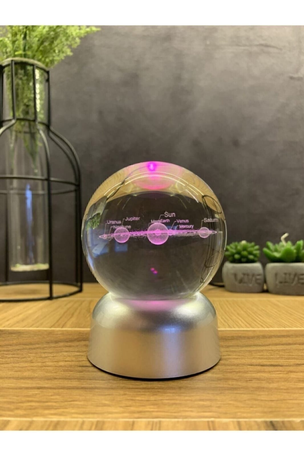 Güneş Sistemi Tasarımlı Işıklı Cam Küre Merkür, Venüs, Dünya, Mars, Jüpiter, Satürn, Uranüs , Neptün